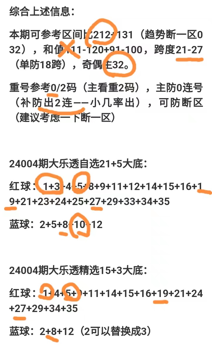 24005期大乐透精选15+3大底: