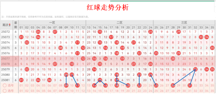 - 区间分布: 数字分布较均匀,一区(09、11),二区(14、16、18、20、22),三区(25、28、31)都有涉及。