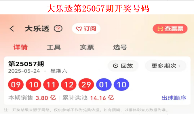 回顾上一期大乐透第2025057期开奖号码
