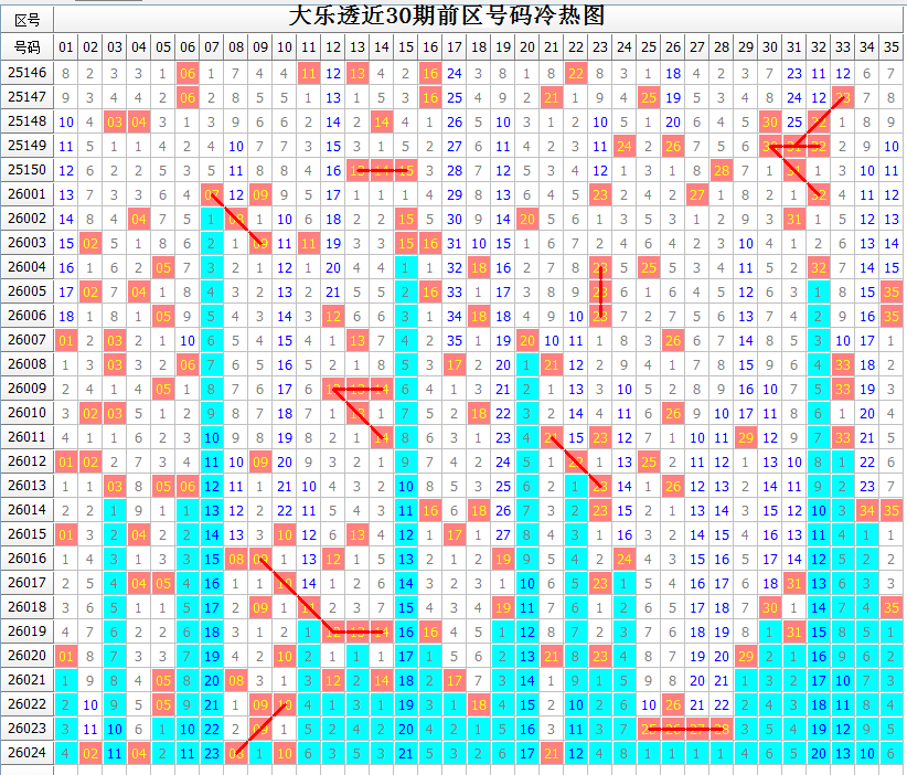 对前区大势的把握,少不了号码区间分布的情况。