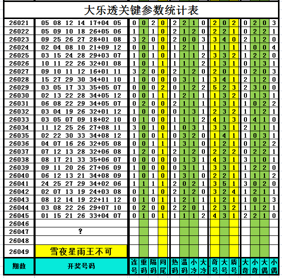 以下是彩虹号签约作者【雪夜星雨王不可】关于大乐透分析的原创文章。