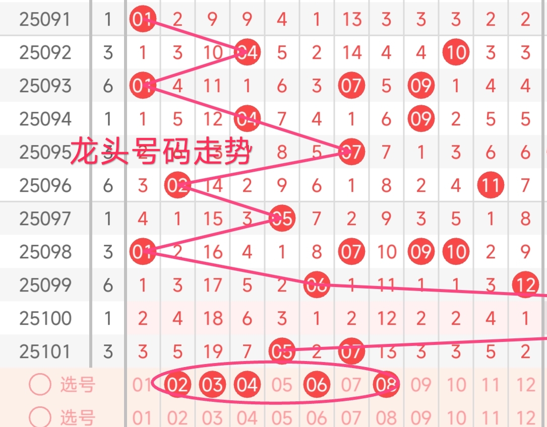 上期龙头号码为05,振幅下降了21点,开出奇数号码,是大号且处于较高位置 。近期龙头号码振幅波动比较大。上期龙头号码为05。从近几期龙头号码的走势来看,龙头号码呈现出大幅度的波动。前期龙头号码有在个位数区间徘徊的情况,且奇数号码出现的频率较高,本期可以注意偶数号码。本期预测龙头号码可能会继续在较小的数字中产生,可以注意小数号码区域01-12。本期还需注意连续多期漏出的号码,需重点关注,有回补龙头号码的趋势。 综合考虑,本期龙头号码推荐关注:02、03、04、06、08。