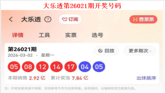 4. 核实信息:最终开奖结果请以中国体育彩票管理中心官方网站或实体店公告为准。
