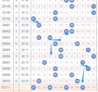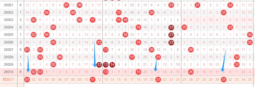 那么根据上面的分析,体彩大乐透第2026011期后区就可以得到这些数据:
