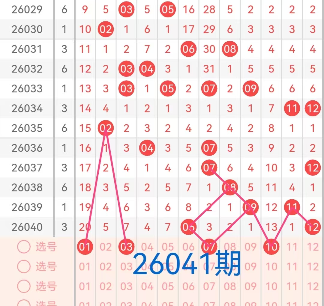 3. 奇偶分析:上期前区号码的奇偶比为2:3。整体来看,前区的偶数号码占优势。未来几期,预计奇数号码将有反补,建议关注奇数热号。