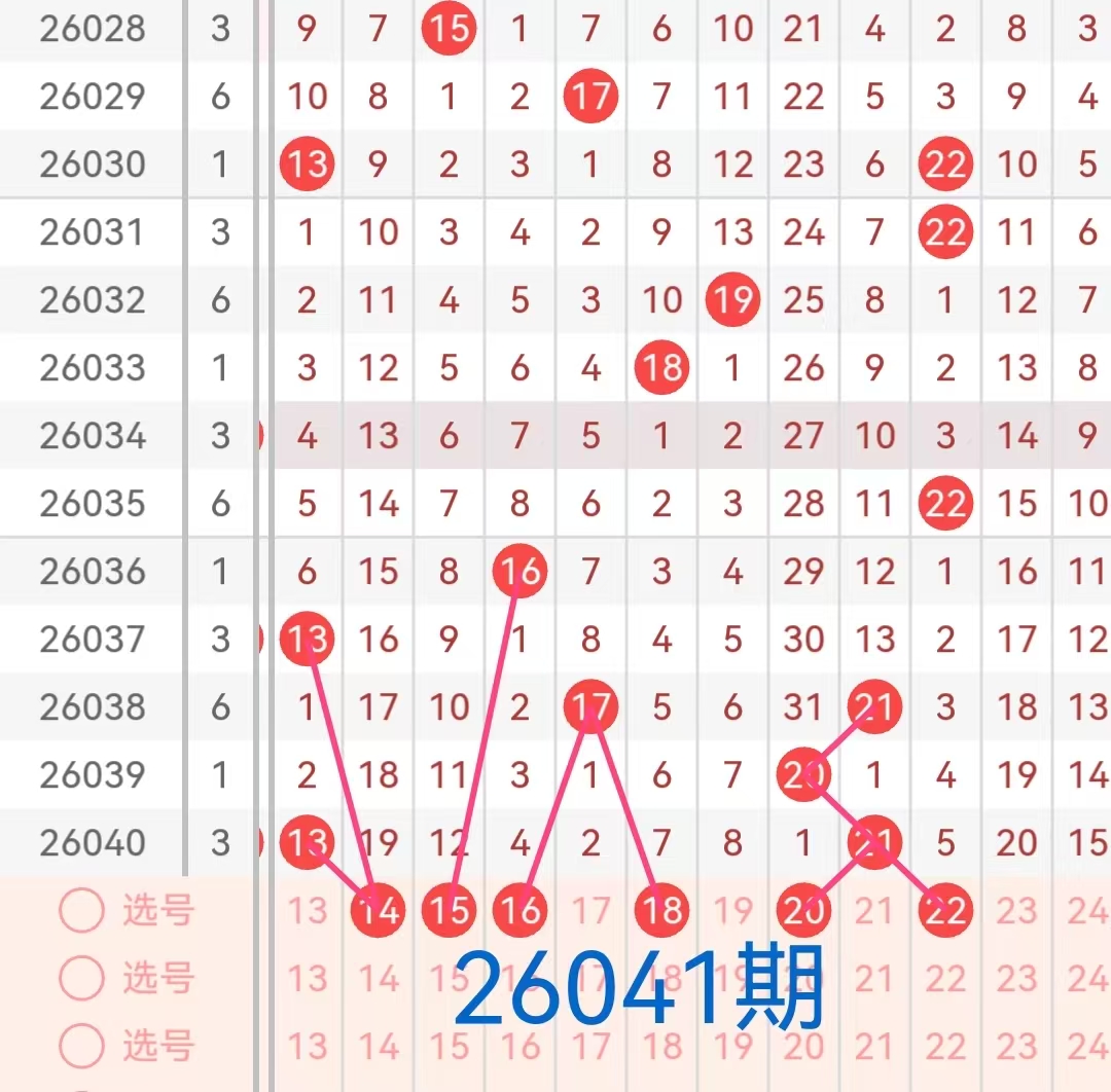 2. 二区(13-24):上期该区间开出两个号码13和21,号码13在遗漏2期后再次开出,且与第一区间开出的号码12形成二连号的形式。号码21相隔1期后再次开出,且与近期开出的号码形成斜梅花走势。根据历史开奖来看,近期该区间活跃度较低,本期预计会有1-2个号码会继续开出。特别是那些遗漏次数较大的号码14、15、18和该区间内近期表现较好的号码16、20、22这个号码在走势上表现出一定的稳定性,且与前几期出号形成呼应,有望出现在本期开奖中。
