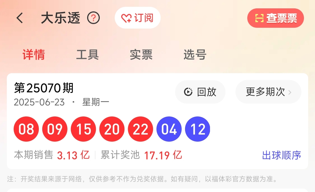 首先让我们回顾一下上期大乐透25070期的开奖号码为08、09、15、20、22,蓝球04、12。前区和值74,前区跨度14,区间比为2:3:0,奇偶比为2:3。