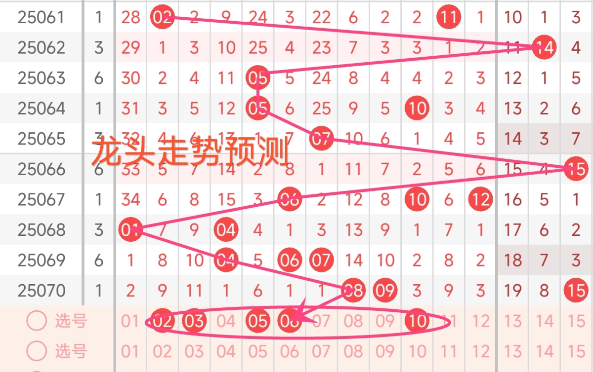 上期龙头号码为08,振幅上升了4点,开出偶数号码。近期龙头号码振幅波动比较大。观察近期开奖数据,龙头号码呈现出一定的波动性。上期龙头为08,相对处于中间位置。本期龙头比较看好06,这个号码在历史开奖中出现频率相对较高,且从走势上看,有较大的可能性出现在首位。 本期还需注意连续多期漏出的号码,需重点关注,有回补龙头号码的趋势。 综合考虑,本期龙头号码推荐关注:02、03、05、06、10。