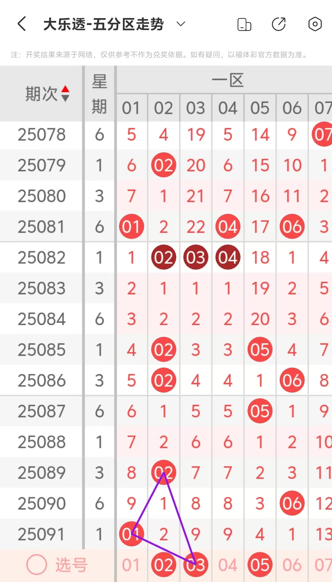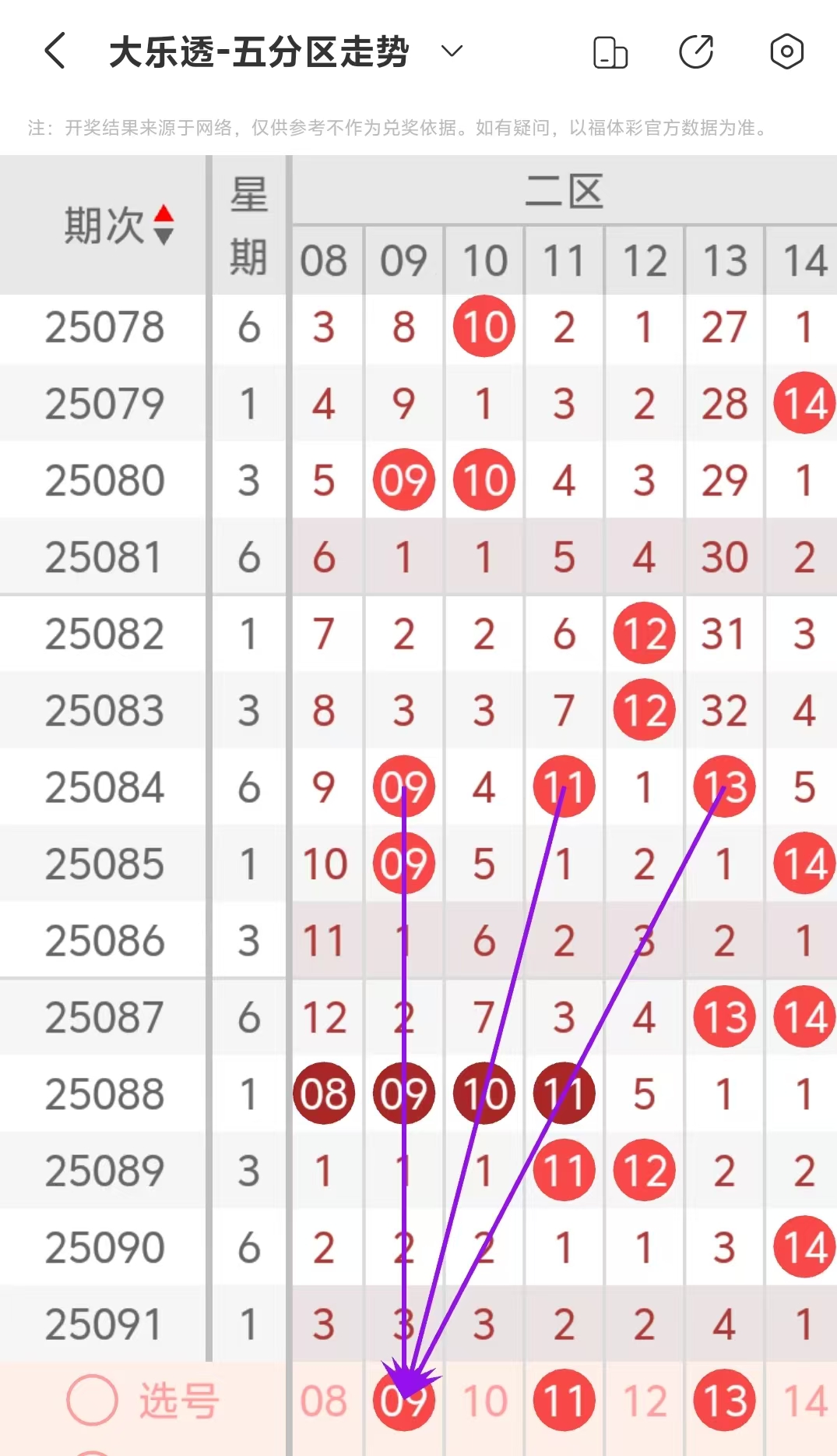 25090期开出热号2个,温号0个,本期关注温号,冷号。