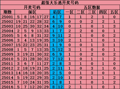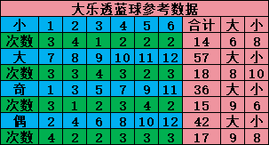 后区蓝球是每期从01-12中开出2个号码,把号码分成2个区,大小划分(01 02 03 04 05 06小,07 08 09 10 11 12大)奇偶划分(奇01 03 05 07 09 11,偶02 04 06 08 10 12)。