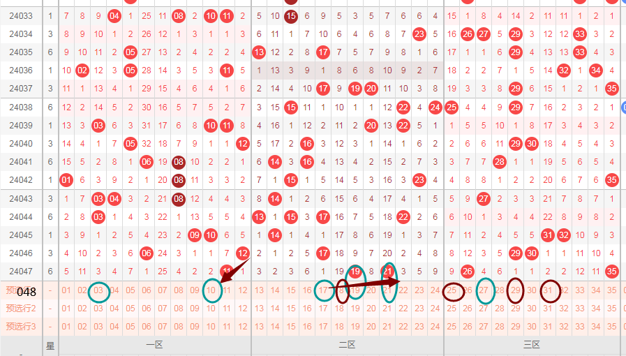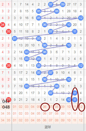 这条规则的含义比较简单,就是利用上期的后区的两个蓝码相加,得到的结果作为本期前区红球的必杀号码,大家同样可以利用最近两期开奖号码验证。047期蓝号区相加和为21,那么048期红号考虑开出21号.后区杀号也是死规律,只可用于参考也不是绝对的。