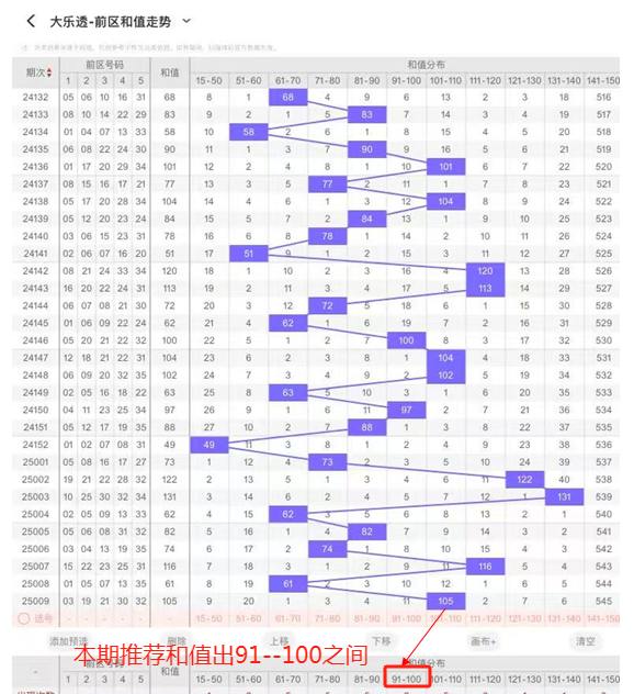 前区奖号未开出重号,连号开出0个,奇偶比为3:2, 和值为105,跨度为29,三个区的区间比为1:2:2,质合比为2:3。后区号码开出奇偶06 09,2个大号。