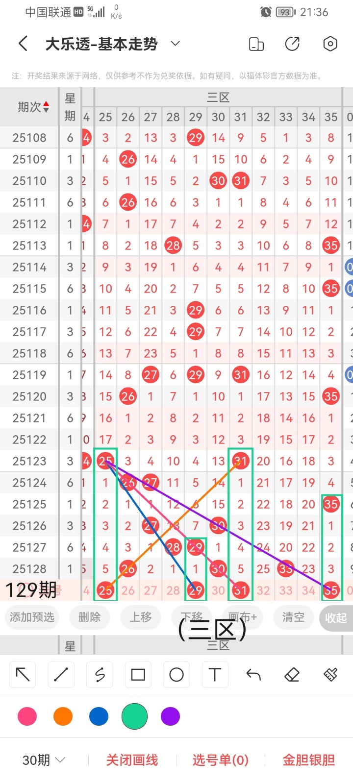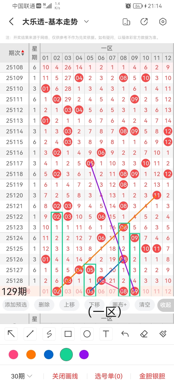 通过以上对上期的简单回顾,下面进入大乐透第2025129期(下面简称本期)的选号分析: