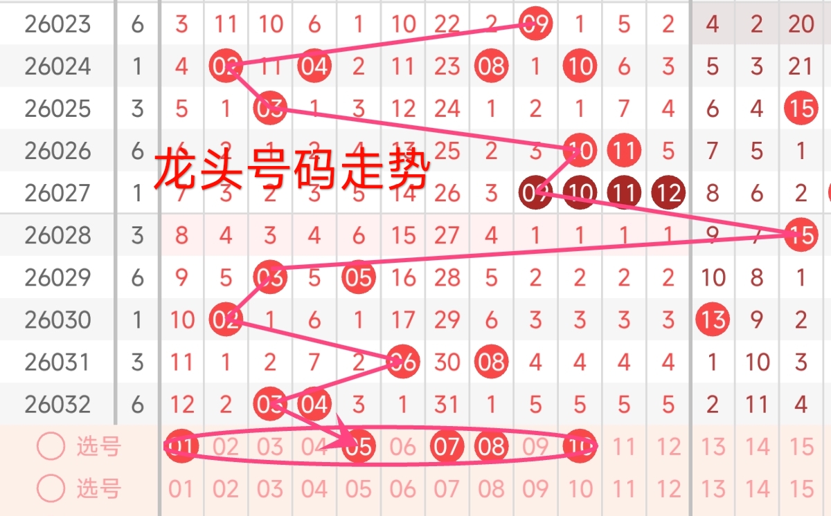龙头号码走势分析: