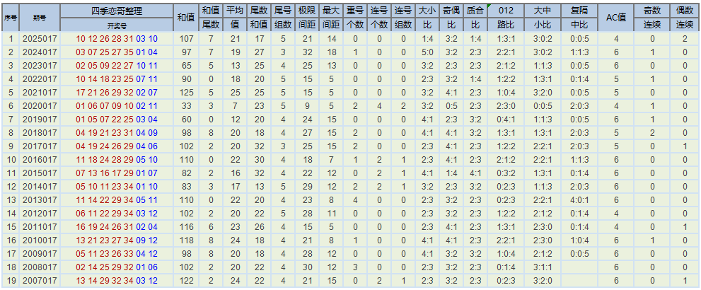 下图为大乐透彩种诞生以来每年的017期各类数据以及历年同日期开奖数据,各位大佬及彩友们请拿走~