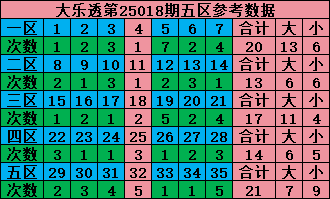 从分区大小中选择号码,大乐透35个号码,理论上每个号码7期出现一次,在18期中每个号码应该出现2-3次,分区需要分两个大区五大区和七大区:五大区每个区在2025年18期中应该出现18个号码,七大区每个区在2025年18期中应该出现12-13个。