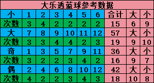 后区蓝球是每期从01-12中开出2个号码,理论上在18期每个号码应该出现3个,把号码分成2个区,大小划分(01 02 03 04 05 06小,07 08 09 10 11 12大)奇偶划分(奇01 03 05 07 09 11,偶02 04 06 08 10 12)。