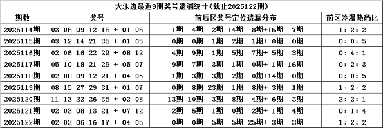 马姐大乐透第123期:前区排除连码,后区注意全热码组合