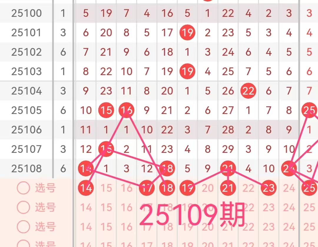 2. 二区(13-24):上期该区间开出四个号码14、18、21、24。号码14遗漏12期后开出,且与前期开出的号码15形成斜连走势。号码18遗漏18期后开出,号码21遗漏29期后开出,号码24遗漏10期后开出。根据历史开奖来看,近期该区间活跃度较高,本期预计会有1-2个号码会继续开出。尤其是二连号甚至三连号的形式极有可能在本期出现。如二连号17、18或者18、19。该区间内近期遗漏次数较大的号码,如14、21、23、24这个号码在走势上表现出一定的稳定性,且与前几期出号形成呼应,有望出现在本期开奖中。