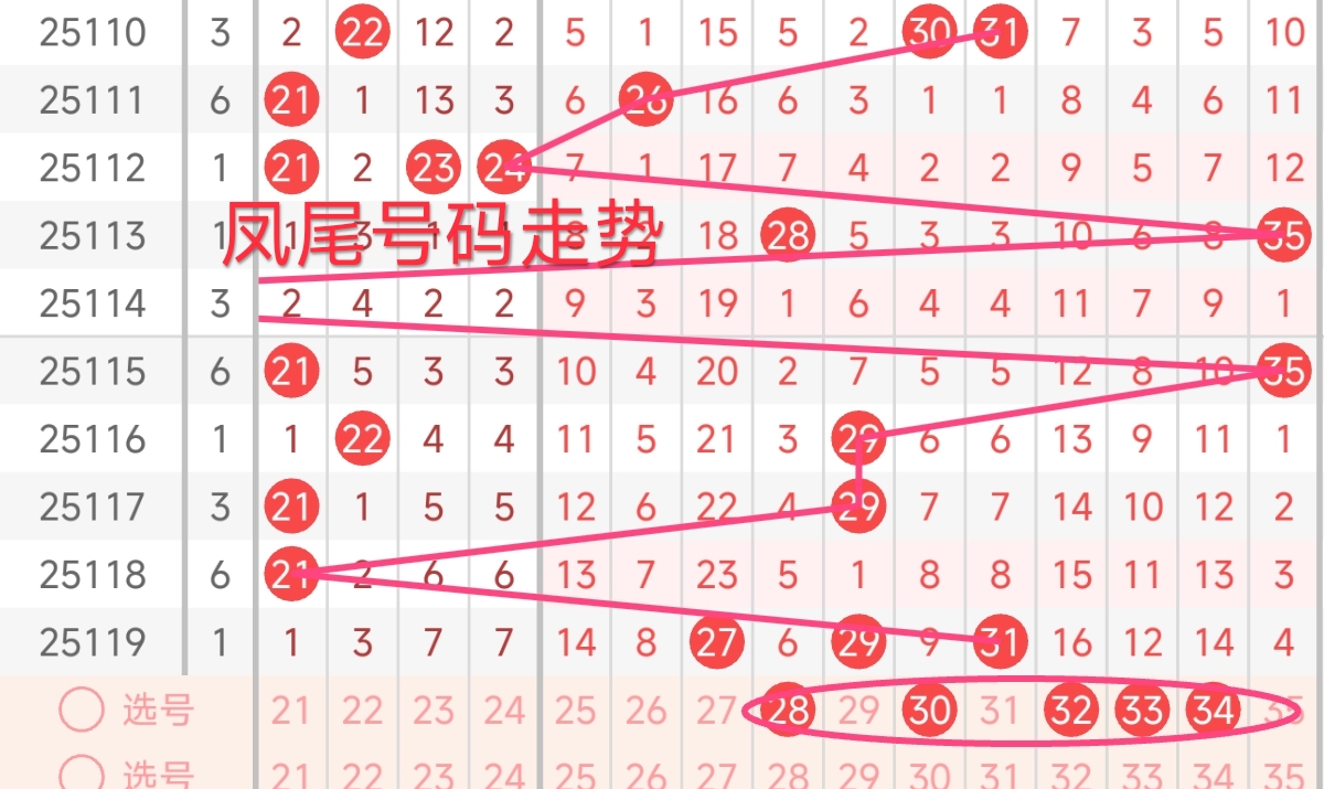 凤尾号码走势分析: