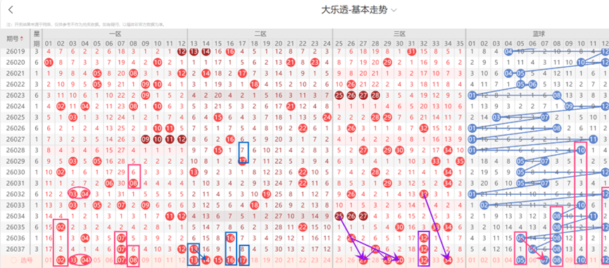 龙本龙-大乐透-第038期选号分析,重点关注一区和三区