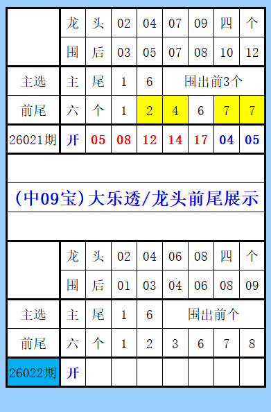 大乐透(中09宝)龙头前尾展示