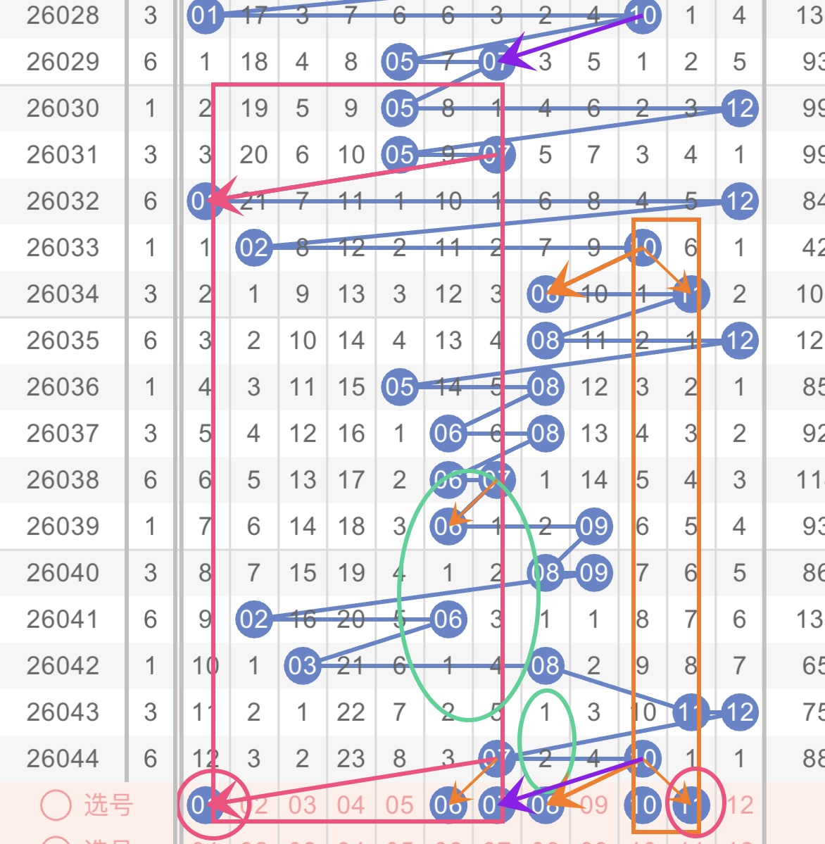后区蓝色球顺期开出了大大组合07、10 ,两个都是一路号码,一奇一偶,已经连续两期开出的都是奇偶组合,已经到达一个常规性的临界点,所以本期应该不会再开出奇偶组合模式,而应该主要关注奇奇组合或者是偶偶组合。