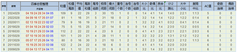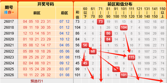 接下来我们来看前区小大、奇偶、质合、和值分布图: