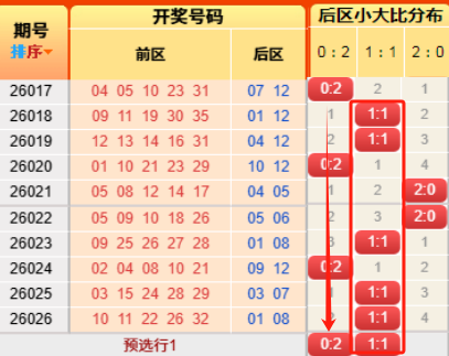 上期后区开出小大比为1:1。