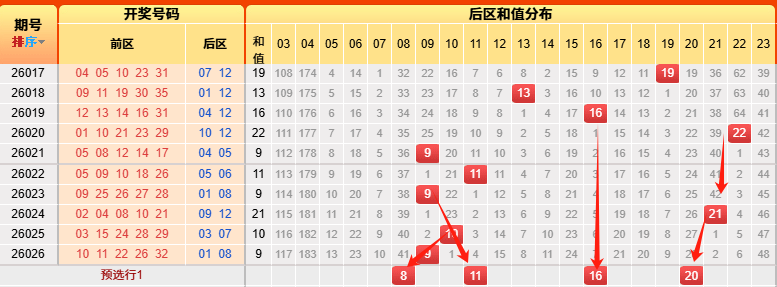 4、后区和值