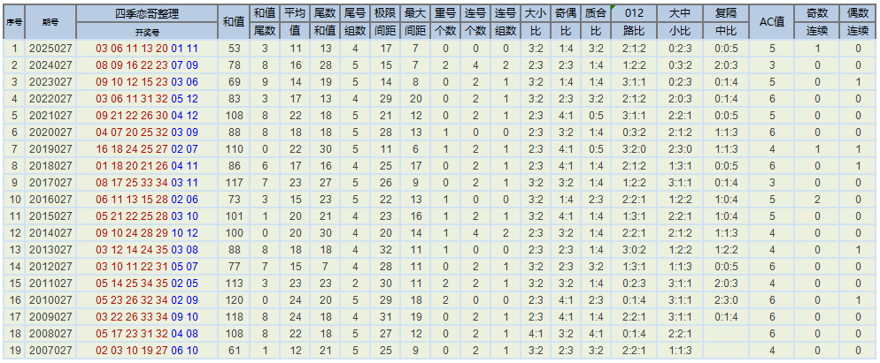 下图为大乐透彩种诞生以来每年的027期各类数据以及历年同日期开奖数据,各位大佬及彩友们请拿走~