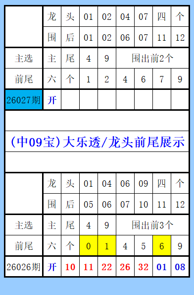 大乐透(中09宝)龙头前尾展示