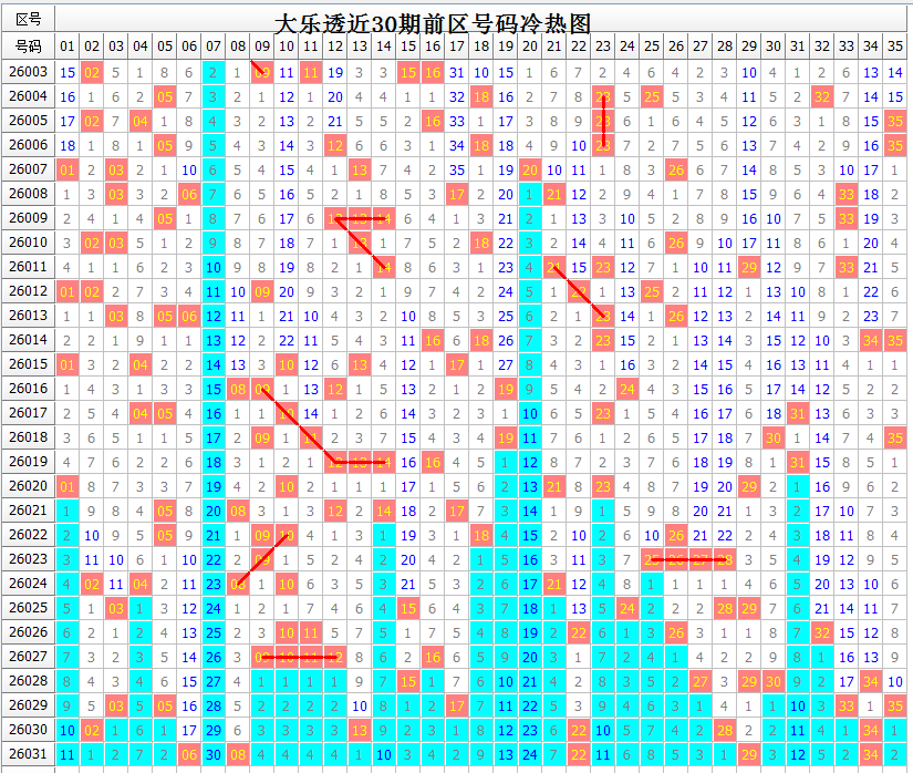 对前区大势的把握,少不了号码区间分布的情况。