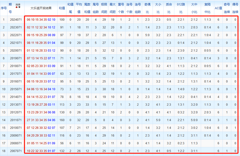 这18期有10期是有连号的,占比大,所以2025071期应该有连号。
