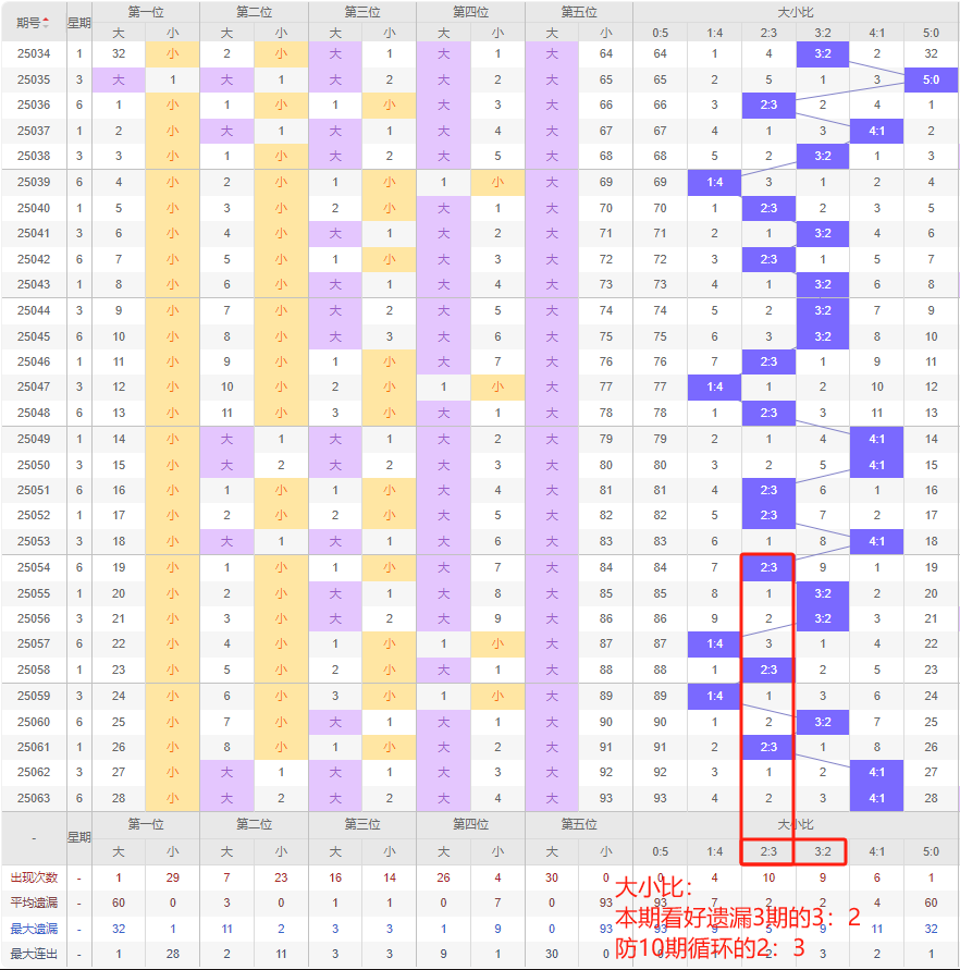 大小比(数值中大小值个数比例,1-17为小;18-35为大):