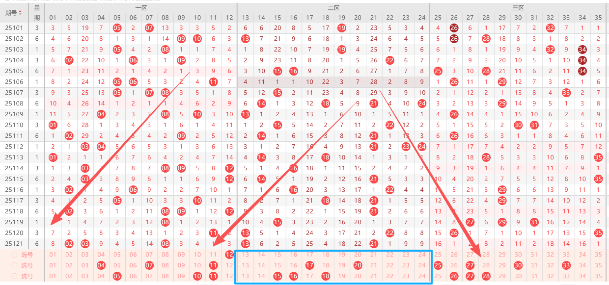 蝴蝶大乐透25122期分析,文章开始分享的规律近6期命中了5期,参考