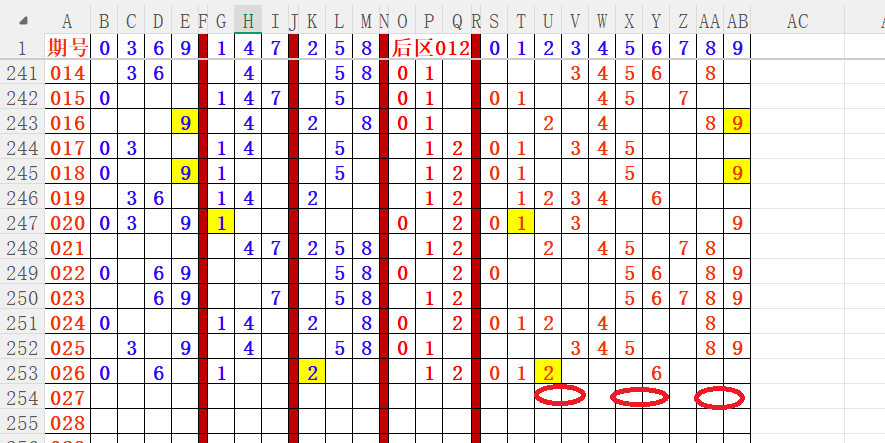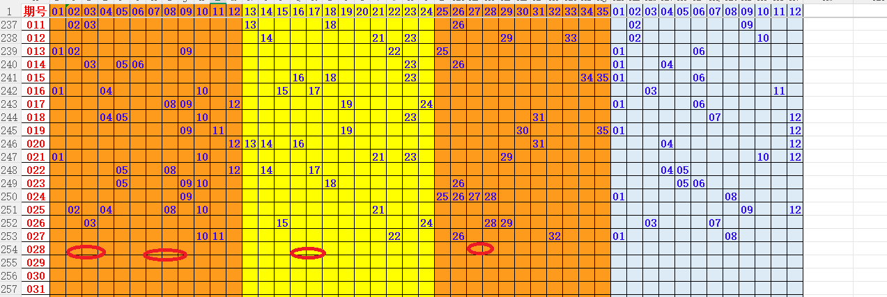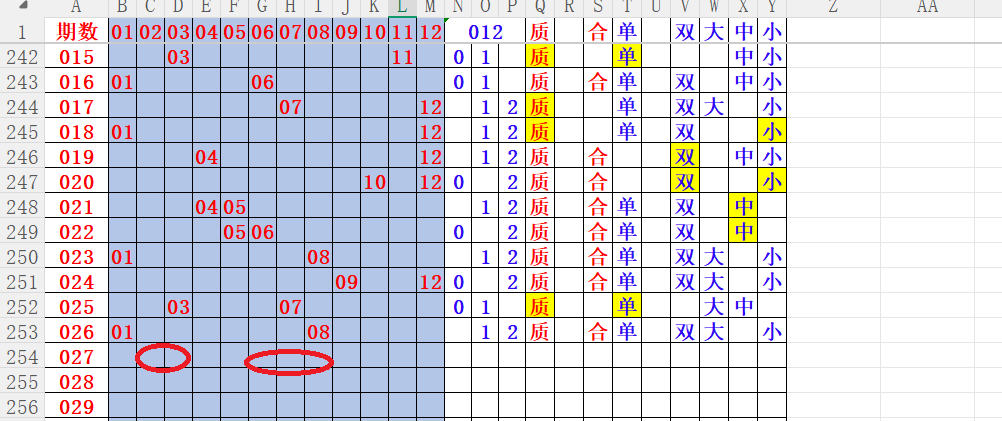 如上图4,012路分析012路,本期重点12路。重点  02 03 06 07 08