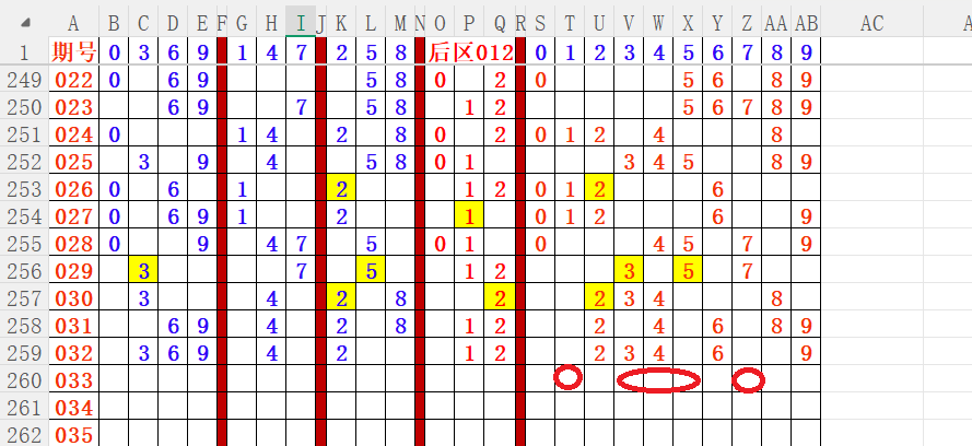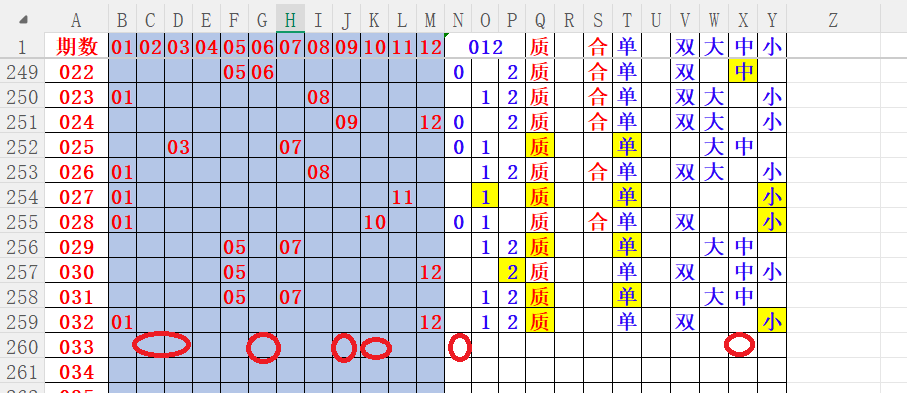如上图4,012路分析012路,本期重点12路。重点 02 03 06 09 10