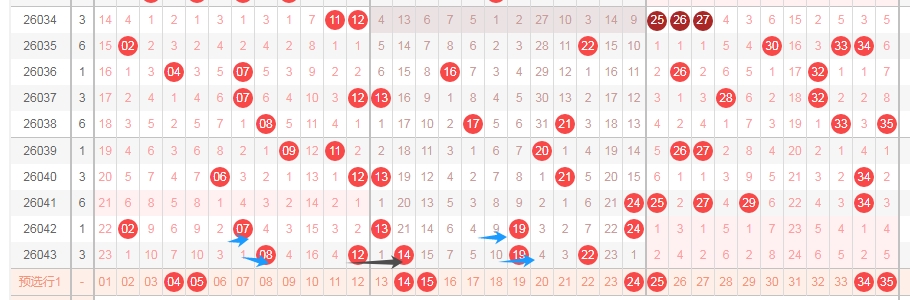 那么根据上面的分析,本期体彩大乐透可以得到这些数据: