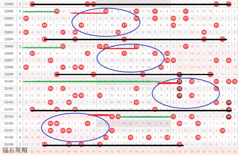 如图所示:体现的是3个局部走势的发展周期,圆圈为密集处的填空,本期定性为新局部走势第2期,真实目的空间填蛋跨期。预计蛋跨类似后退建蛋继续围着10-13,本期合并空间在10-13,代表1区多开,而绿色线应在尾号推不倒蛋跨,代表可能断2或者断3,主力出号在1-3区。
