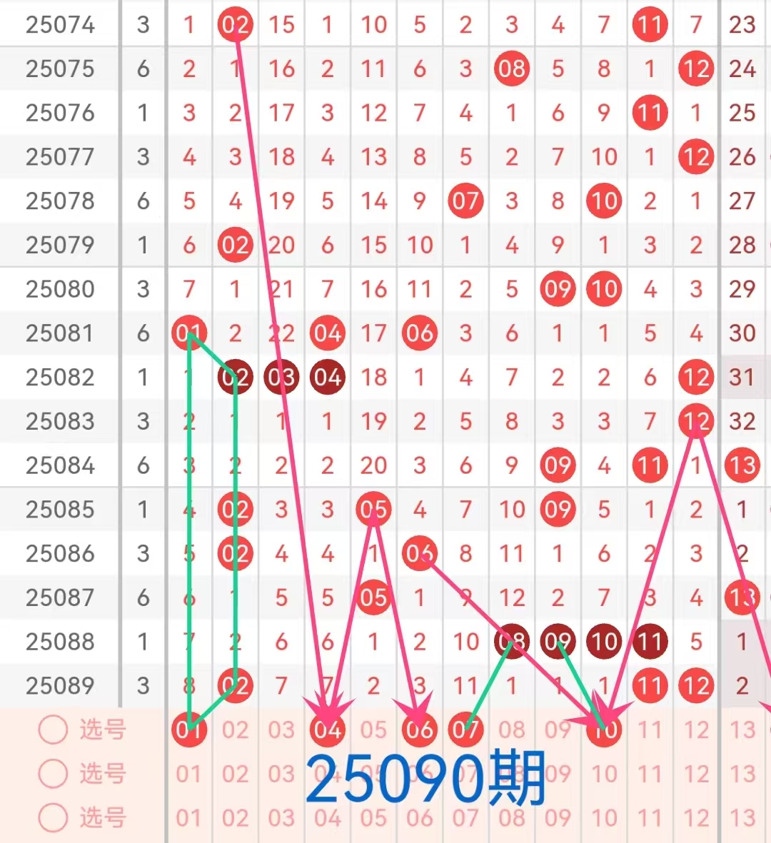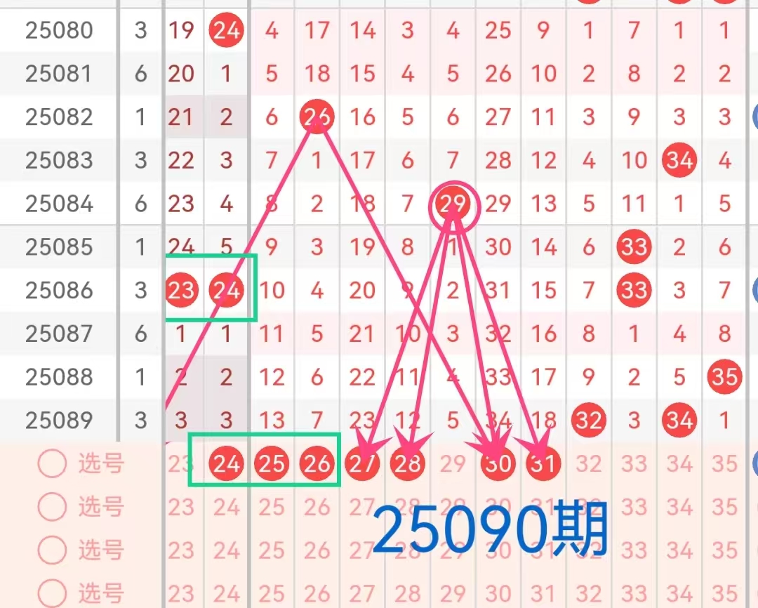 2. 凤尾号码分析:凤尾号码(前区最大号码)上期是34。这是一个最大的凤尾,过去十期内,凤尾号码多集中在18到35之间,其中2字头号码表现较为活跃。因此,本期应重点关注26-35区间的数字,特别是号码25、28、30、31。