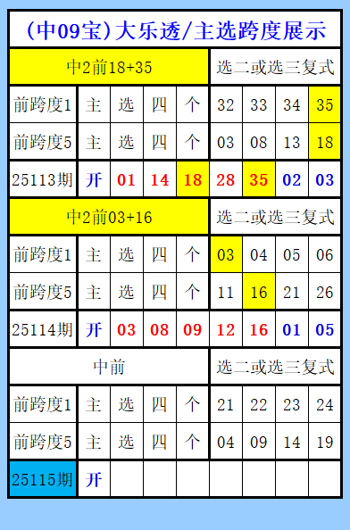大乐透第115期图文(中09宝),主选跨度展示