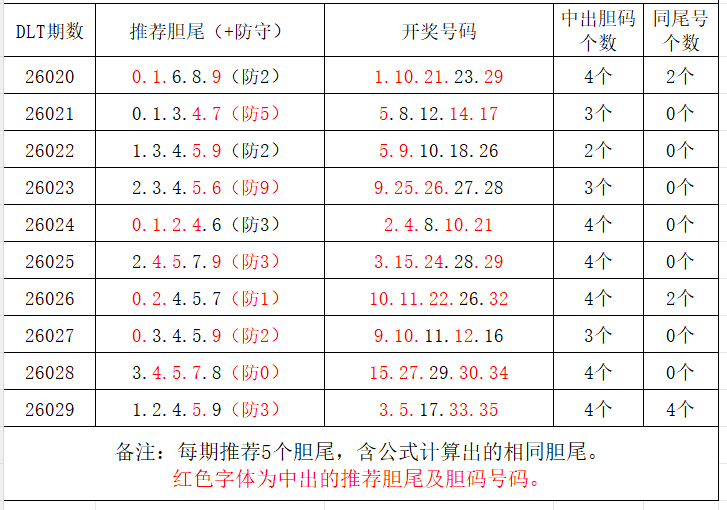 如图,每期推荐胆尾中出1-4个。上期推荐胆尾中出2尾4码!推荐胆尾是按照公式计算的顺序,不定位红球号码的顺序。本期推荐胆尾:1尾/2尾/4尾/3尾/0尾,加推防守胆尾+胆码号码:***(会员专区可见)。个人分析,仅供参考。