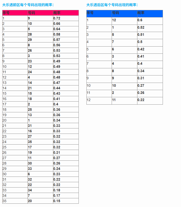大乐透算法各类号码分布图