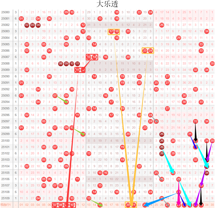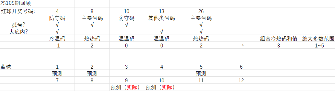 注意5个红球的组合冷温热码和值范围保持在-1~5