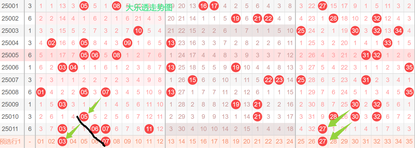 大乐透上期开奖号:3.6.7.11.27+2.8,开奖号特点是没有重号,一组连号6.7,一码边号6,一码冷号11,本期倾向重号回归。