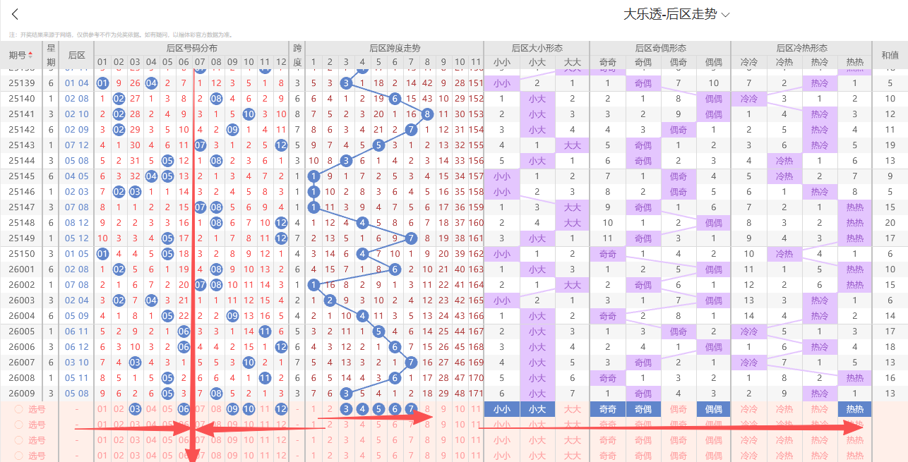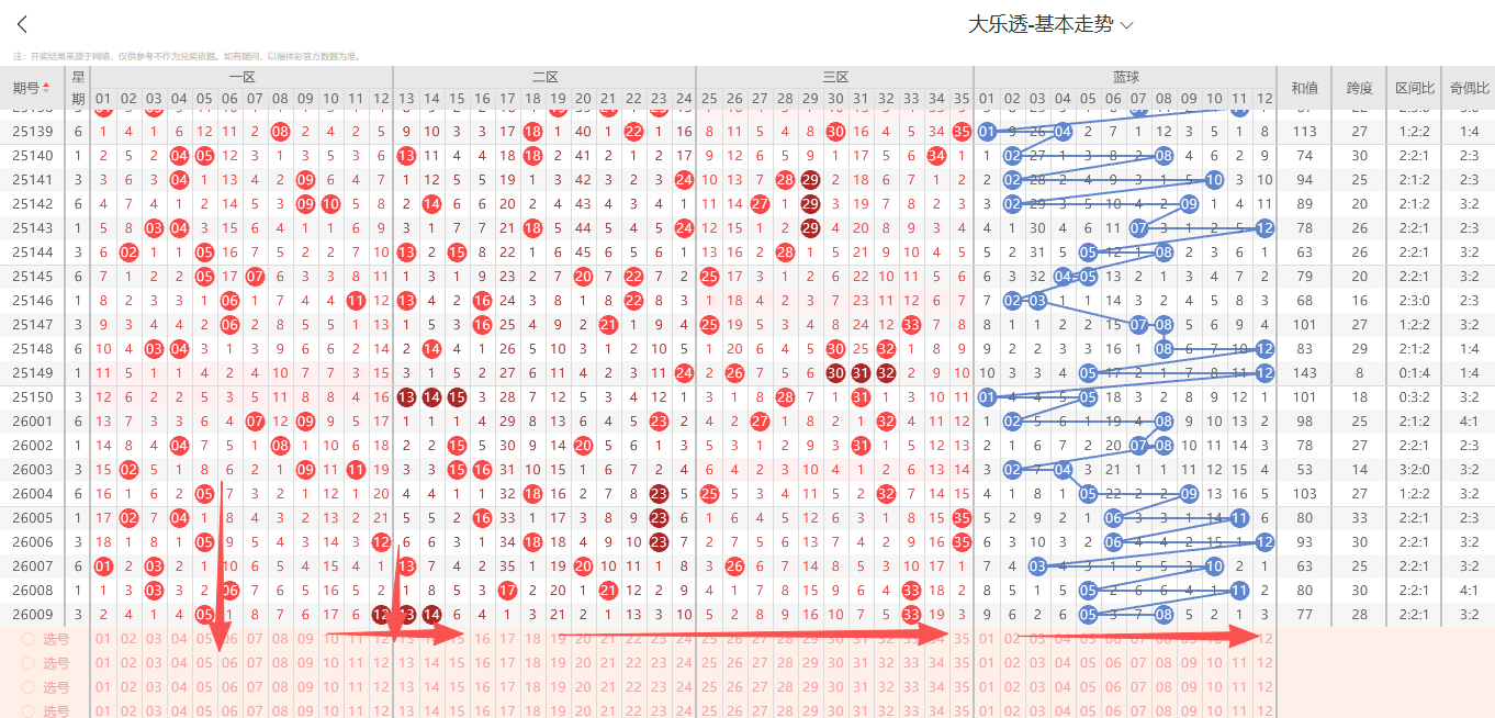 ③和值:结合对区间的比例数据来看本期和值参考51~100范围参考