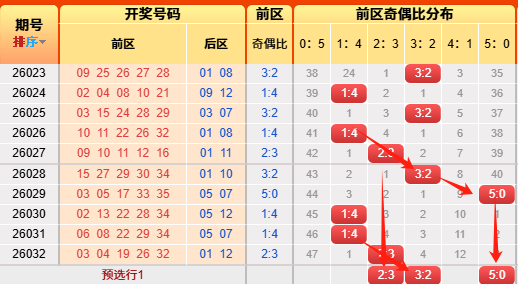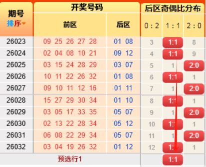 上期后区开出奇偶比为1:1,推测正确