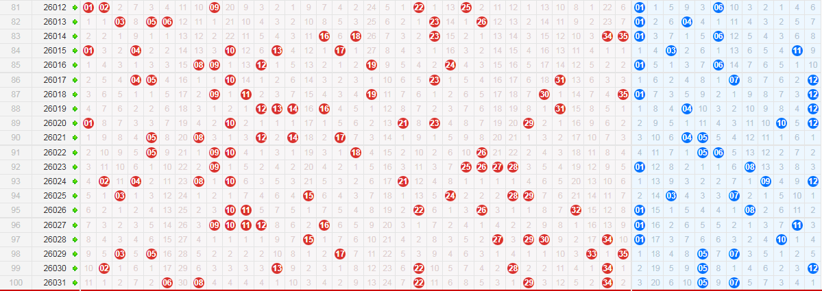 (一)前区01-35号码的近100期优势劣势逐一分析