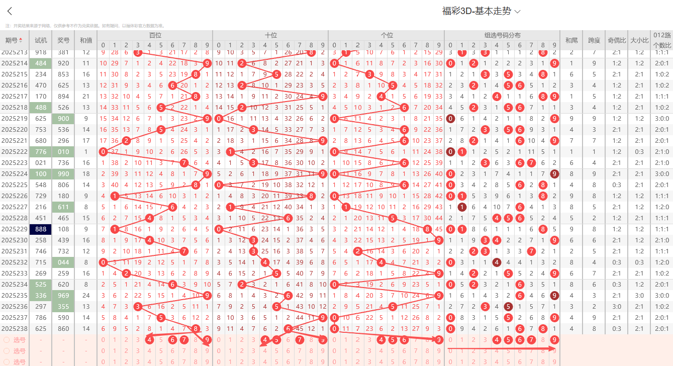③个位:上期开出小号偶数4号,上期出现奇偶互变开出偶数1路号码,根据历史记录012路及奇偶周期性规律变化的特征特点本期2路号码有开出的趋势1路号码注意适当预防。